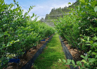 直接ブルーベリー農園に出向き、葉を一枚一枚丁寧に手摘み。