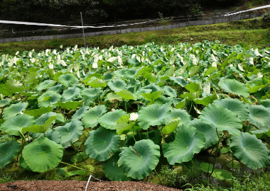 直接蓮農園に出向き、葉と花を一枚一枚・一輪一輪丁寧に手摘み。